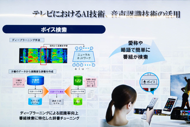 開発にあたっては、生活ノイズの充満する環境でいかに音声認識性能をあげるかを焦点とし、Alexaを起動するトリガーワード認識にニューラルネットワークを使用。ハードウェアはテレビ開発時のノウハウを用いてチューニングしたことで、高い認識性能を獲得したという。
