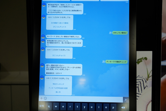 さらに同社では、LINEを利用した対話形式での番組検索サービスを本日よりスタート。クラブパナソニック公式アカウントを友だち登録することで、「今日のドラマは?」「何かいい番組ない?」といった問いかけで番組検索が起動、結果を表示する。