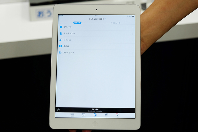 音楽再生機能でも、DIGAに録った音楽データを、スマホでストリーミング再生もしくは持ち出し再生できる。DIGAではWAVまたはFLACフォーマットでCDリッピングが行えるが、その際に128kbpsのAACファイルもスマホ再生用として生成。DIGA本体やDLNAからはWAV/FLAC、「どこでもDIGA」アプリを用いたスマホではAACでの音楽再生が楽しめるようになっている。