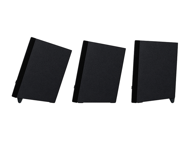 エンクロージャーの素材には、自然な響きを生み出す木材を採用。デスクトップでのPCと接続しての使用を想定し、本体は傾斜をつけて設計されている。また、付属の角度調整用ゴム足を装着することでさらに角度を調整可能だ。