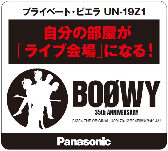 BOØWYの解散が発表された伝説的ライブが4K Ultra HD Blu-ray「BOØWY 1224 -THE ORIGINAL-」として12月24日に発売される。この発売に先駆けてパナソニックは、収録されている「MARIONETTE」と「NO.NEW YORK」の2曲を液晶テレビ“プライベート・ビエラ”「Z1シリーズ」の店頭デモ映像として本日10月20日から全国の家電量販店店頭などで視聴できるようにする。