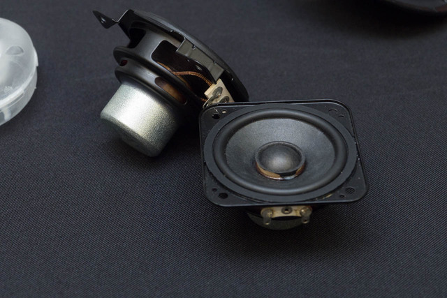 またスピーカーユニットのセンターキャップは、中心部にあるボイスコイルのボビンに直結してコーン部に触れない構造としており、エネルギーのロスを防いでいる。またサブウーファーには、駆動力と容積を適正化する目的で、共振の強さを最適化するダンプ材を装填した「ダンプバスレフダクト」を接続している。