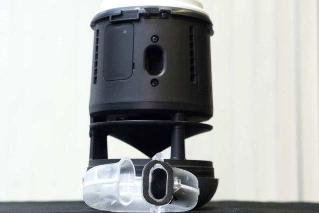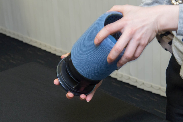 表面に布素材のファブリックカバーがかけられており、家庭のインテリアになじむようデザインされている。汚れが目立つ場合などにはカバーのみ外して洗浄することもできる。本体そのものはIPX3の生活防水と撥水塗料でコーティングされているため、キッチンなど水しぶきが気になる場所でも安心して設置可能としている。