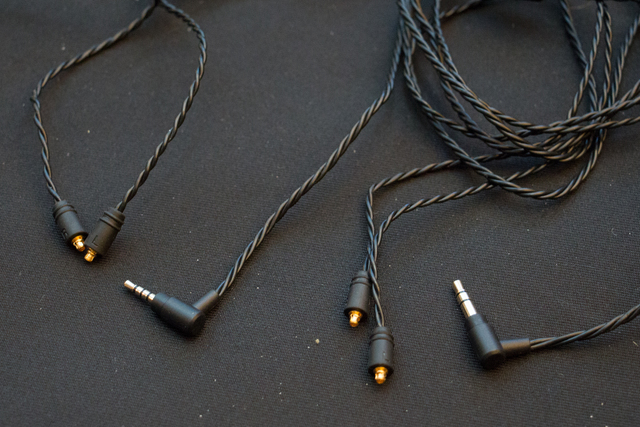 パイオニアブランドの製品では、イヤホン「SE-CH9T」向けのリケーブルが参考出展。アンバランスケーブルは、銃声ケーブルからマイクボックスを削除、接点を減らしたオーディオ信号専用となるため、さらなる音質向上が期待できるとのこと。バランスケーブルも用意され、こちらを使えば同社製DAPとの組み合わせでSE-CH9Tをバランス駆動できる。いずれもツイストケーブル構造で、左右のアース信号線を分離しており、チャンネルセパレーションの改善が期待できる。
