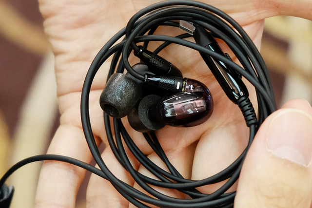会場ではCampfire Audioとコラボしたイヤホン「Asteria A1」も出展された。ドライバーはハイブリッド方式で、高域用に2基のBA型ドライバー、低域用にφ8.5mmのベリリウムPVDダイナミック型ドライバーという構成となっている。
