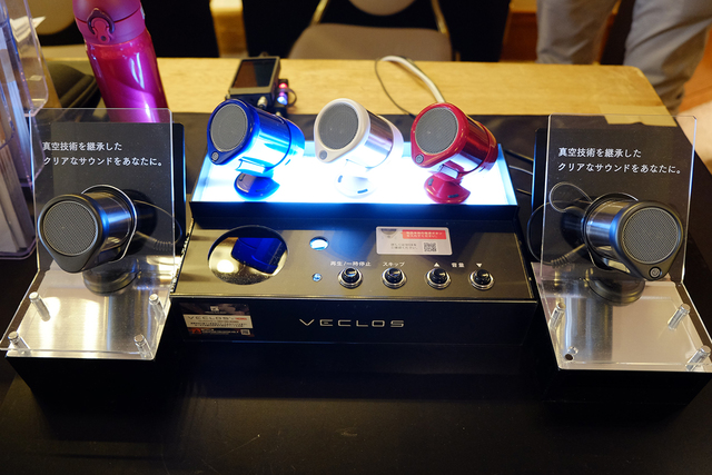 サーモスが展開するVECLOSブランドは、真空管ワイヤレスポータブルスピーカー「SSA-40S」をデモ。先日発表されたプロ・セミプロユーザー向けモニター「MSA-380S」は残念ながら展示がなかったが、魔法瓶からの技術を活かしたという独自のスピーカーのサウンドに、来場者が足を止めて聴き入っていた。