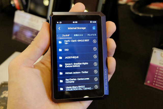 audio-opusは、ポータブルプレーヤー「opus#1」のDACチップCS4398をCS43198へと変更した「opus#1S」を参考出展。アンプ周りをグレードアップさせて高出力を実現しているとしており、価格についてはopus#1と同程度を予定しているとのこと。12月中の発売予定で、opus#1もしばらく併売するという。ブルーとパープルの2色をラインナップする。