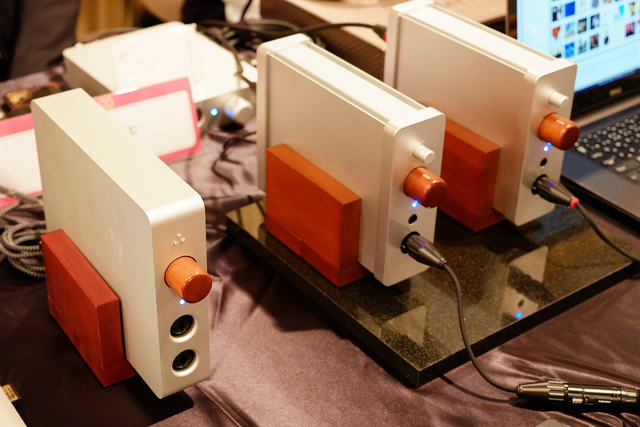 テイクティは、音場活性装置を組み込んだという接続ケーブル「SAC」をデモ。左右チャンネルの+を3MΩ以上のハイインピーダンスでミックスする音場活性装置により、音質向上効果があるという。そのほかRE・LEAFは電流駆動式アンプ「E1」とともに電流駆動と電圧駆動をハイブリッド構成とした「E3 hybrid」を用意。他にはないという独自設計を施した機器に、長時間試聴する来場者の姿が見られた。