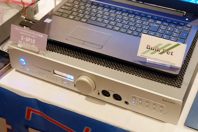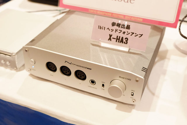 NModeはUSB伝送「Bulk Pet」に対応したことを発表したばかりの「X-DP10」のほか、ヘッドホンアンプ「X-HA3」を展示。1bitデジタルヘッドホンアンプ「HA-1」の後継機にあたるモデルで、4Pin XLRバランス、3Pin XLRバランス、6.3mmステレオの出力を搭載。ACアダプターで動作する。価格は予価で10万円前後、来春までの発売を目指しているとのことだ。