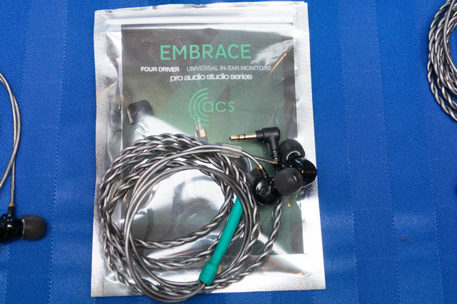 また、acsユニバーサルIEMの試作品として、2ドライバー/4ドライバーモデルが出展された。「あくまで既存製品の筐体にドライバーを仮組みした評価用」とのことで、来場者から感想を募り、意見をメーカーにフィードバックするとのこと。