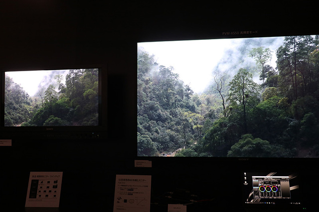 PVM-X550の輝度はこれまで400カンデラだったところ、650カンデラ以上になるという。それでもBVM-X300の輝度には及ばないことから、高輝度部分を自然にロールオフする「Roll-off LUT」を用意。同機能を利用することでBVM-X300の表現に近づくとのことだ。実際にデモを見ると、たしかに高輝度部の表現がBVM-X300に似ていた。