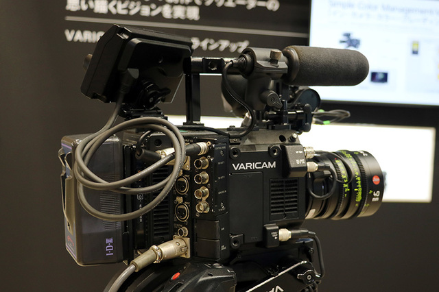パナソニックはブース正面に2つのシネマカメラを展示。1つはVARICAM(バリカム)シリーズで、VARICAM 35やVARICAM LTなど、以前から展開している機種が置かれている。