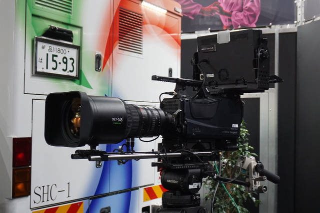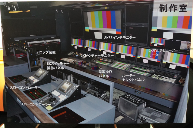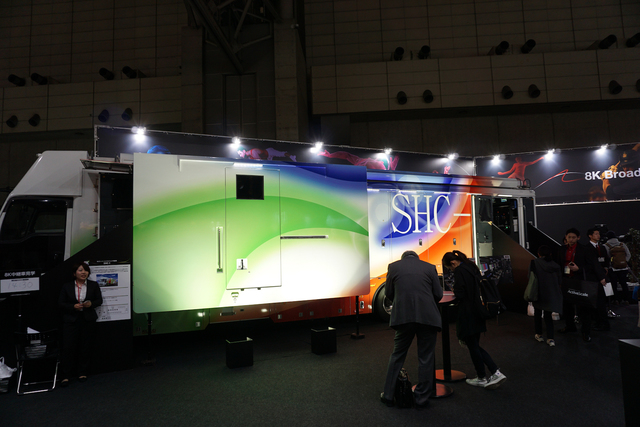 ブースには、実物の8K中継車を用意。実際に内部を見学することができるツアーを実施していた。中継車内には機材室と制作室が備えられ、実際に中継のために使われる8Kモニターや8Kカメラのオペレーションパネルなどを実際に見ることができた。