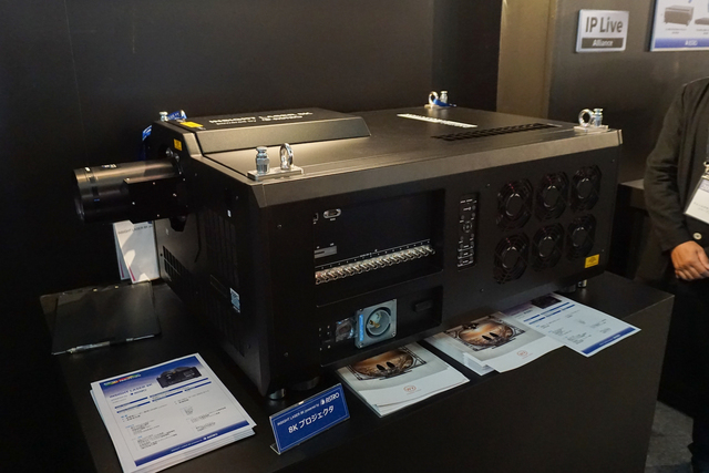 ブース内には大型シアタールームが用意され、アストロデザインによる8K HDR対応プロジェクター「INSIGHT LASER 8K」を用いた8K映像再生が行われた。本機は25,000ルーメンの高輝度レーザーを光源を搭載。120fps入力やBT.2020色域の入力にも対応する。