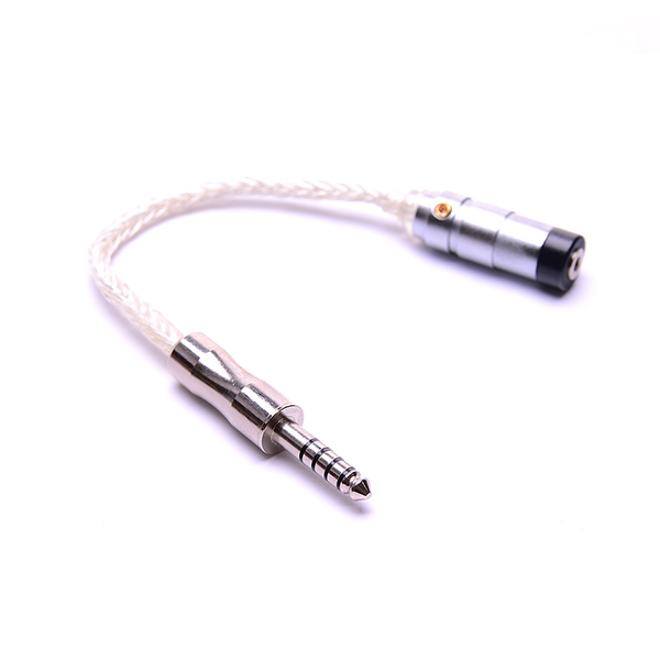 2.5mm4極-4.4mm5極変換プラグは、ケーブル部分に、14本の銀コートOCCを編んで製造された芯線を12本使用した、12芯ハンドメイドケーブルを採用。銀コートOCCにより、しっかりした低域と華やかな高域が再生を実現したとする。ケーブル長は17cm。