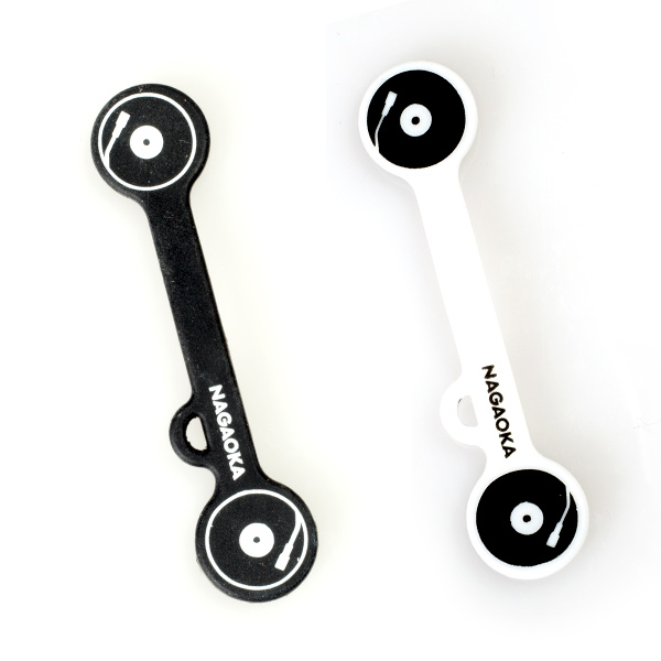 円形部には、レコード針で知られるNAGAOKAならではのレコード盤がデザインされている。素材はシリコン製で、カラーはブラック/ホワイト、ブルー/グレーの2バージョンが用意される。