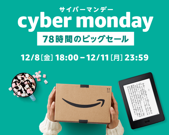 Amazonは、78時間におよぶビッグセール「サイバーマンデーセール」を今年も開催する。期間は12月8日(金)18時から12月11日(月)23時59分まで。