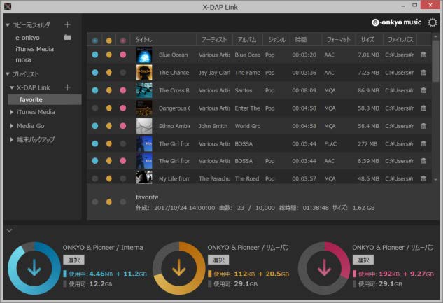 オンキヨー&パイオニアマーケティングジャパンは、同社がラインナップするデジタルオーディオプレーヤー(以下、DAP)の楽曲管理/転送アプリケーション「X-DAP Link for Windows」をアップデート。新たにプレイリスト機能を実装した。