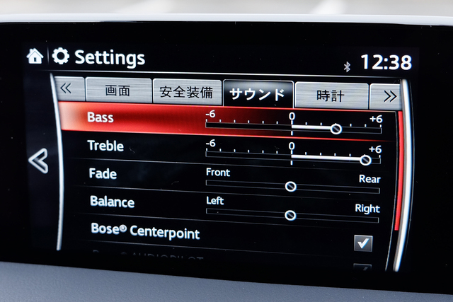 AUDIOPILOT機能は、不自然な効かせ方でないことが好印象だった。ノイズキャンセリングのようなものではなく、あくまでもとの音源のバランスを聴かせるように補正するもので、どこかをことさらに誇張させることはしていない。補正すべき部分が少なければ、音の変化が小さく感じられるかもしれないが、そこでもし大きく変わるのであれば、ただのブーストになってしまう。CX-8が高い静粛性を誇るからこそ、ナチュラルな補正が行えるのだろう。常時オンにして使ってよい機能だと思う。