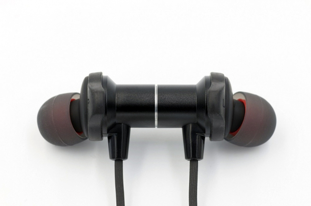 本体は軽量かつ堅牢なアルミを採用。徹底した小型化を図り着け心地にも配慮しつつ、外来ノイズに強く高い耐久性も備えるとのこと。使用しない時はハウジングの背面同士を内蔵のマグネットでくっつけて首に掛けておくことも可能。