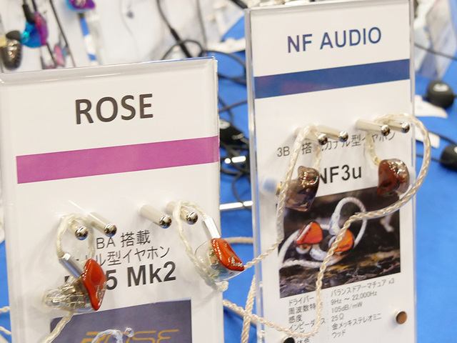 伊藤屋国際は、多くのブランドのイヤホンやDAPを展示していたが、イヤホンで注目なのはNF AUDIOの3BAイヤホン「NF3u」(54,800円)と、ROSEの5BAイヤホン「BR5 MK2」(36,800円前後)。特にROSEはまだ発売されていない新モデルで、12月末の発売開始を見込む。