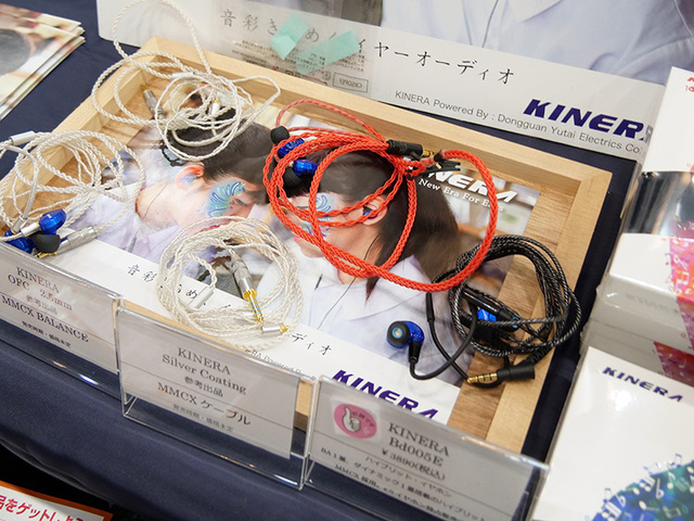リアルアシストは、中国KINERAブランドのイヤホンを展示。1BA+1ダイナミックのハイブリッドでありながら、e☆イヤホンでは3,890円で販売している「Bd005E」を出展したほか、参考出品としてシルバーコーティングのMMCXケーブルや、導体にOFCを採用した2.5mmプラグ採用MMCXケーブルなどを展示していた。