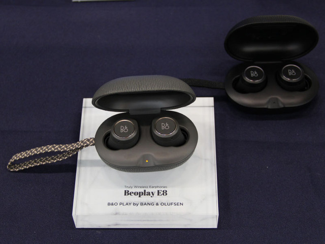 「Beoplay E8」は、同ブランド初の完全ワイヤレスイヤホン。大きな特徴として、左右のイヤホンを結ぶ通信にNFMI(Near-Field Magnetic Induction)技術を採用し、完全ワイヤレスイヤホンで指摘されがちな、音の途切れを最小限に抑える設計としている。11月22日からブラックカラーを先行発売しているが、既に国内外で在庫切れとなるなど大きな人気を集めているという。実際に、Beoplay E8を試聴した来場者からは、「音切れしにくい」といった好評価を得ていた。