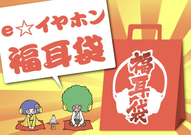 e☆イヤホンは、販売価格100万円のものなど、ヘッドホン/イヤホンやポータブルプレーヤーなどを詰め合わせた福袋「福耳袋」を各店舗およびオンラインストアで販売する。