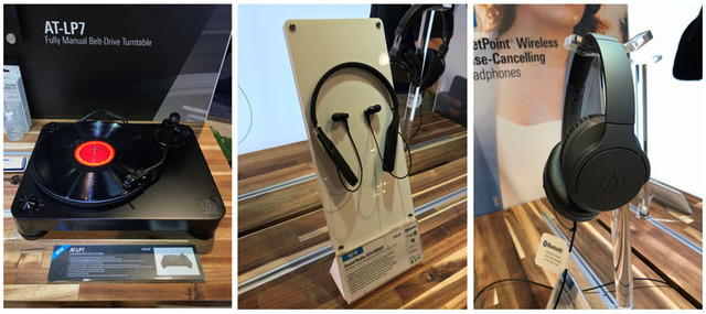 今回、初めて出品されたのは、ハイファイユーザー向けとして開発されたベルトドライブ方式のターンテーブル「AT-LP7」、ワイヤレスのデジタル信号をドライバーまで高純度伝送するという“ピュア・デジタル・ドライブ”採用のBluetoothイヤホン「ATH-DSR5BT」、ノイズキャンセリング機能を搭載したワイヤレスヘッドホン「ATH-ANC700BT」の3モデル。なお、いずれの製品も国内での発売は未定となっている。