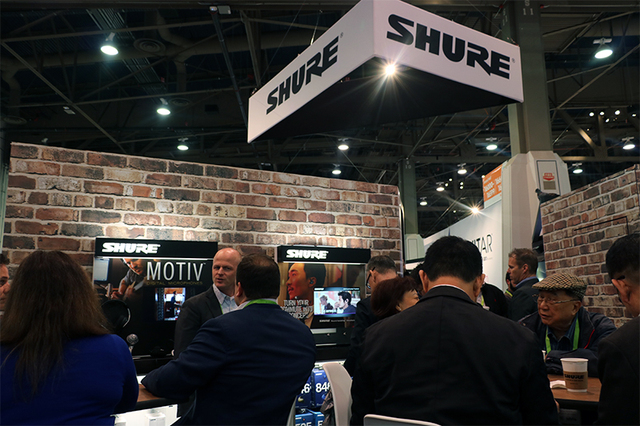 米ラスベガスにて開催中の「2018 International CES」。Shureは、事前イベント「CES Unveiled」にて発表された、USB Type-C - MMCXリケーブル「RMCE-USB」、iOS/Android切替スイッチを装備した3.5mmアナログ端子 - MMCXリケーブル「RMCE-UNI」(関連ニュース)をはじめ、イヤホン“SEシリーズ”や“MOTIVシリーズ”のマイクなど展示製品のラインナップを絞り、様々なシーンに合わせたShure製品の魅力をアピールすべく、ワークスペースや電車のホームなどをイメージしたブース展開を行っている。