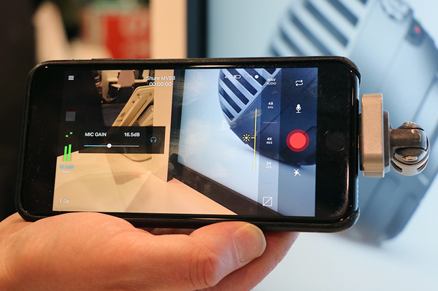 ブースでは、アメリカではすでに提供が開始されているという「ShurePlus MOTIV」のビデオ版を試すことができた。本アプリではハイレゾ品質での録音機能に加えて、4K解像度の撮影も可能。これにより撮影しながら画面上でゲイン調整などの録音設定も可能となり、高画質かつ高品質な動画が一つのアプリで作成できるようになる。また日本では展開されていないが、近日リリース予定とのこと。