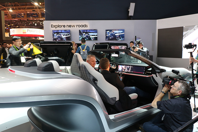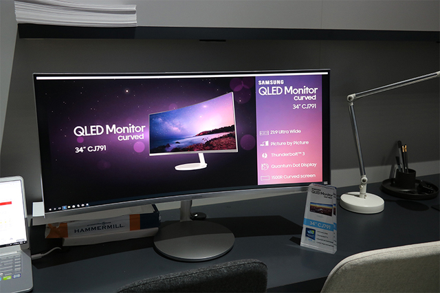 その他、ハーマンインターナショナルと共同開発している車に搭載するデジタルコックピットプラットフォームの展示や、ワークスペースをイメージしたスペースにデジタルホワイトボード「Samsung Flip」や34型のQLEDディスプレイモニター「CJ791」などを出展している。