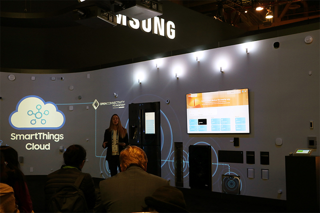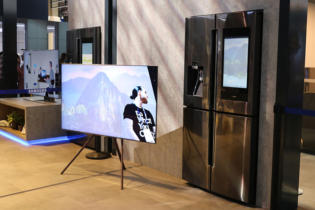 Bixbyの搭載やSmartThingsによる連携は、音声操作に対応するディスプレイ搭載冷蔵庫「Family Hub」など、テレビに限らず様々な家電製品への展開を予定しており、会場では技術の紹介スペースのほか、生活空間のコンセプト展示やデモなどが行われていた。