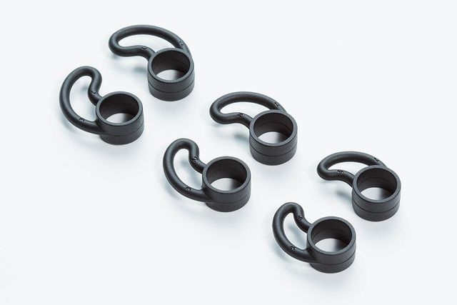 イヤホン部には装着性を高める着脱可能なイヤーフック(3サイズを同梱)を配置。このフックには柔らかい素材を用いることで耳へのフィット感を向上。装着性も高め、激しい運動でも快適な装着性を実現するという。また、イヤホンヘッド内部にマグネットを搭載することで、使用しない時は左右のイヤホン同士をマグネットで吸着させ、ペンダントのように首から吊り下げることができる。