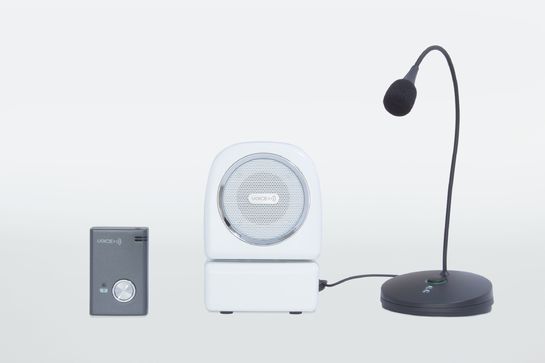 オリオン、コミュニケーション支援向けの“聴こえやすい”スピーカー。ワイヤレスマイクとセット