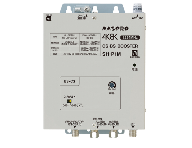 マスプロ電工は、新4K8K衛星放送(3224MHz)に対応したBL型共同受信用ブースター「CATV・SH-1M」を2月下旬、「SH-P1M」を3月下旬より発売する。価格はCATV・SH-1Mが420,000円(税抜)、SH-P1Mが65,000円(税抜)。