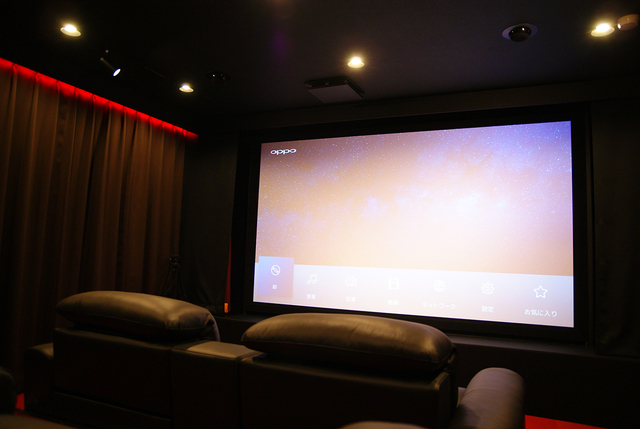 室内は映像を際立たせるダークな内装とし、そこに設置された家庭用4Kプロジェクター(3D対応)は、映画館を超える400,000:1の高コントラスト(デジタルシネマプロジェクターは2000:1〜8000:1程度)を誇り、明るいシーンから漆黒のシーンまでを鮮明に描き分けるとしている。