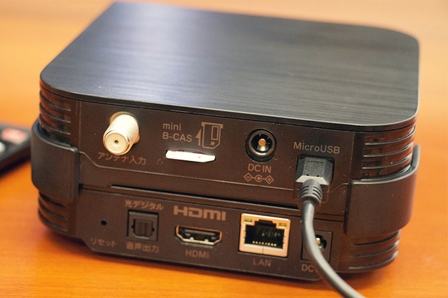 端子類はSTBがHDMI2.0×1、S/PDIF×1、レコーダー接続用USB Type-A端子×1、LAN端子×1、TVチューナーがF型コネクタ×1、STB接続用Micro USB×1、USB Type-A端子×1を備える。外形寸法は125W×57.5H×125Dmm(セットした状態、突起部除く)、質量は480g(セットした状態)。