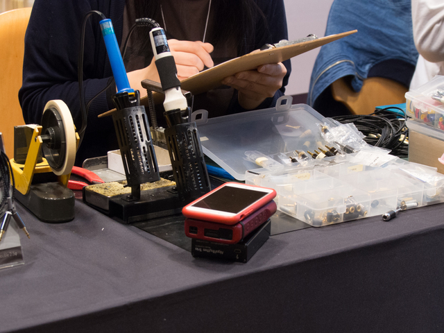 店舗限定の催しとして、S’NEXTによる「イヤホン組み立て講座」イベントが開催された。専用キットを用いて、ユーザーが一から自分好みのチューニングでイヤホンを作ることができるイベント。全3回のすべてが満席とのことで、メーカースタッフの案内のもと、はんだ付け、接着剤などを駆使した本格的なイヤホンを制作する参加者の姿が見られた。