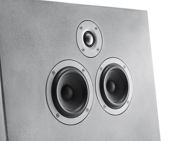 筐体にジオメトリー(幾何学)デザインを採用し、音質に悪影響をあたえる定在波を抑制。スピーカーグリルはステンレススチール製で、着脱しやすいマグネット式となっている。外形寸法は、約410W×510H×245Dmm。質量は約16kg。