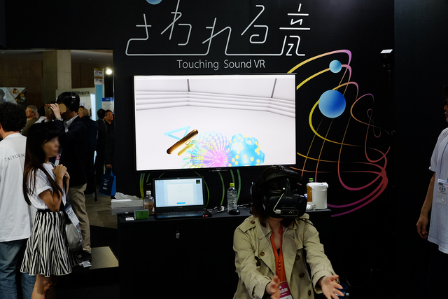 映像制作会社の太陽企画が、次世代ビジネスモデルをつくるためにスタートしたTAIYOKIKAKU R&Dでも、VRと音をマッチさせた取り組みをプッシュ。立体音響システムとVR技術を用いた「さわれる音」という体験コンテンツを展示した。
