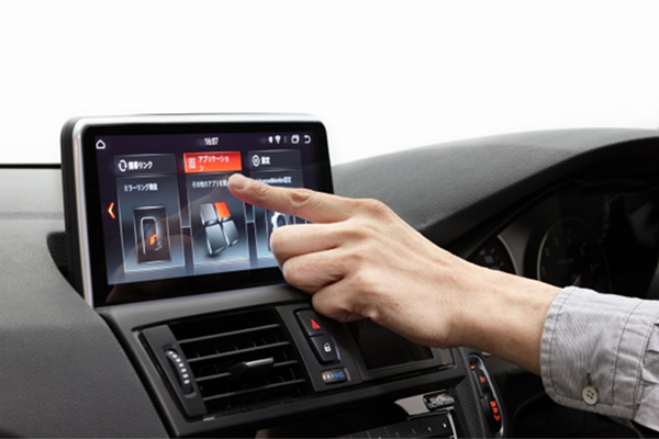 ディスプレイ部は最大10.25型IPS液晶パネル(解像度1,280x480)を採用。純正のナビボタンからの操作のほか、タッチ操作にも対応する。