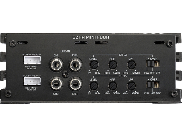 「GZHA MINI FOUR」はコンパクトな筐体にハイパワーなクラスD増幅回路を搭載した「GZHA MINI」シリーズの4chパワーアンプ。
