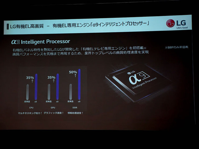 前述のように、有機EL専用映像エンジン「α9 Intelligent Processor」を新開発して搭載。有機ELパネルメーカーを持つLGグループの強みを活かし開発した、新エンジンなのだという。