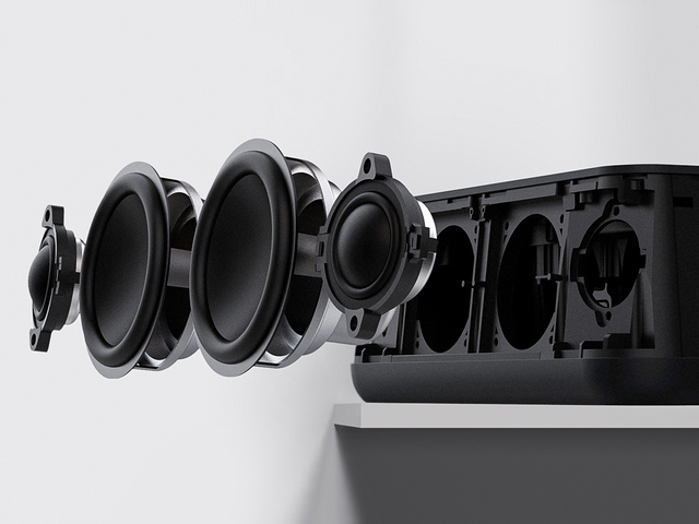 高性能デジタルシグナルプロセッサ―を内蔵、スピーカーには2基のフルレンジドライバーと2基のトゥイーターを搭載し、合計で25Wの出力を発揮する。また独自の低音増強技術「BassUpテクノロジー」を採用し、小音量でも深みのある低音を実現したという。