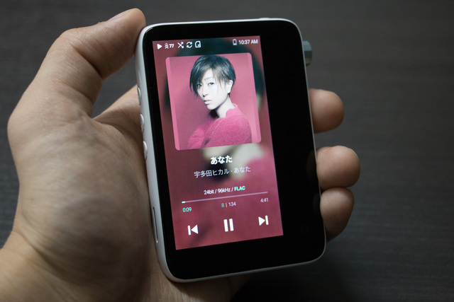 ハンドリングしていて、改めて感心させられたのがそのGUIだ。画面の構成はAstell&KernのSP1000の構成を踏襲しており、各機能にもアクセスしやすい。画面サイズは3.4型(480×854ドット)だが、アルバム一覧などアートワークも美しく表示してくれるのも嬉しい。レスポンスの早さも特徴だが、昨年12月に披露された際のファームウェアよりもさらに反応速度が向上した印象だ。Astell&Kernのような高級機を使っているユーザーにとっても、ふだん使いのセカンドモデルとしても活躍してくれそうだ。