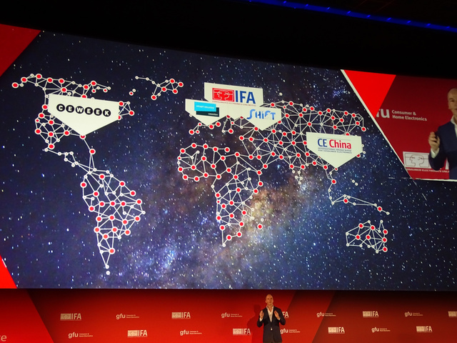 今年もグローバル・プレスカンファレンスの壇上にはメッセ・ベルリン社のCEOであるクリスチャン・ゲーケ氏が登壇して、IFAの見どころとなるポイントを紹介した。