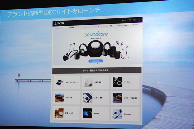 具体的施策として、従来のAmazon、楽天、Yahoo!での販売展開に加えて、アンカーの公式オンラインストアを開設。チャージング関連からオーディオ製品など、ブランドを横断した形でアンカーの全製品について、詳細な情報を分かりやすく確認できる自社サイトとして展開するとのこと。