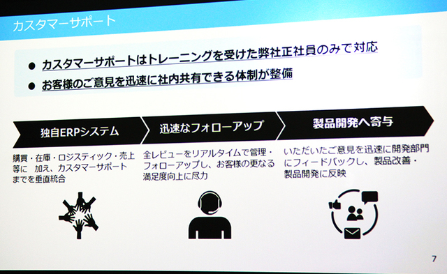 さらに、カスタマーサポート部門を重要視しており、同社ではトレーニングを受けた正社員が対応しているという。「カスタマーサービスの対応はユーザーの購買体験においても重要な役割を果たしている。アンカーとしてはユーザーとのコミュニケーションを通じて市場のニーズを把握し、開発へフィードバックする。これがより良い製品開発および改善へつながってきた」と語った。
