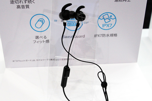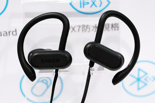 Soundcore Spiritは、上記の「SweatGuard」を搭載したケーブル一体型のBluetoothイヤホン。途切れにくく、広範囲で使用できるワイヤレス規格で、IPX7防水機能にも対応。連続再生時間は約8時間。価格は2,999円(税込)で2018年初夏に発売する。